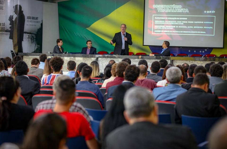 O vice-presidente nacional do PDT, Ciro Gomes apresentou, na manhã desta quinta-feira (11), na sede nacional do partido, em Brasília, um balanço dos primeiros 100 dias de governo do presidente Jair Bolsonaro por meio da plataforma “Observatório Trabalhista”. O presidente nacional do partido, Carlos Lupi abriu o evento, com a