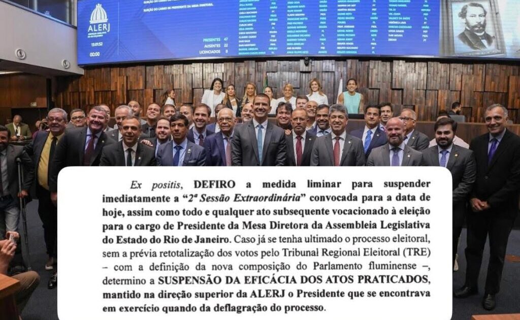 “Caso já se tenha ultimado o processo eleitoral, sem a prévia retotalização dos votos pelo Tribunal Regional Eleitoral (TRE) – com a definição da nova composição do Parlamento fluminense – determino a suspensão da eficácia dos atos praticados, mantido na direção superior da ALERJ o Presidente que se encontrava em exercício quando da deflagração do processo”, determinou.